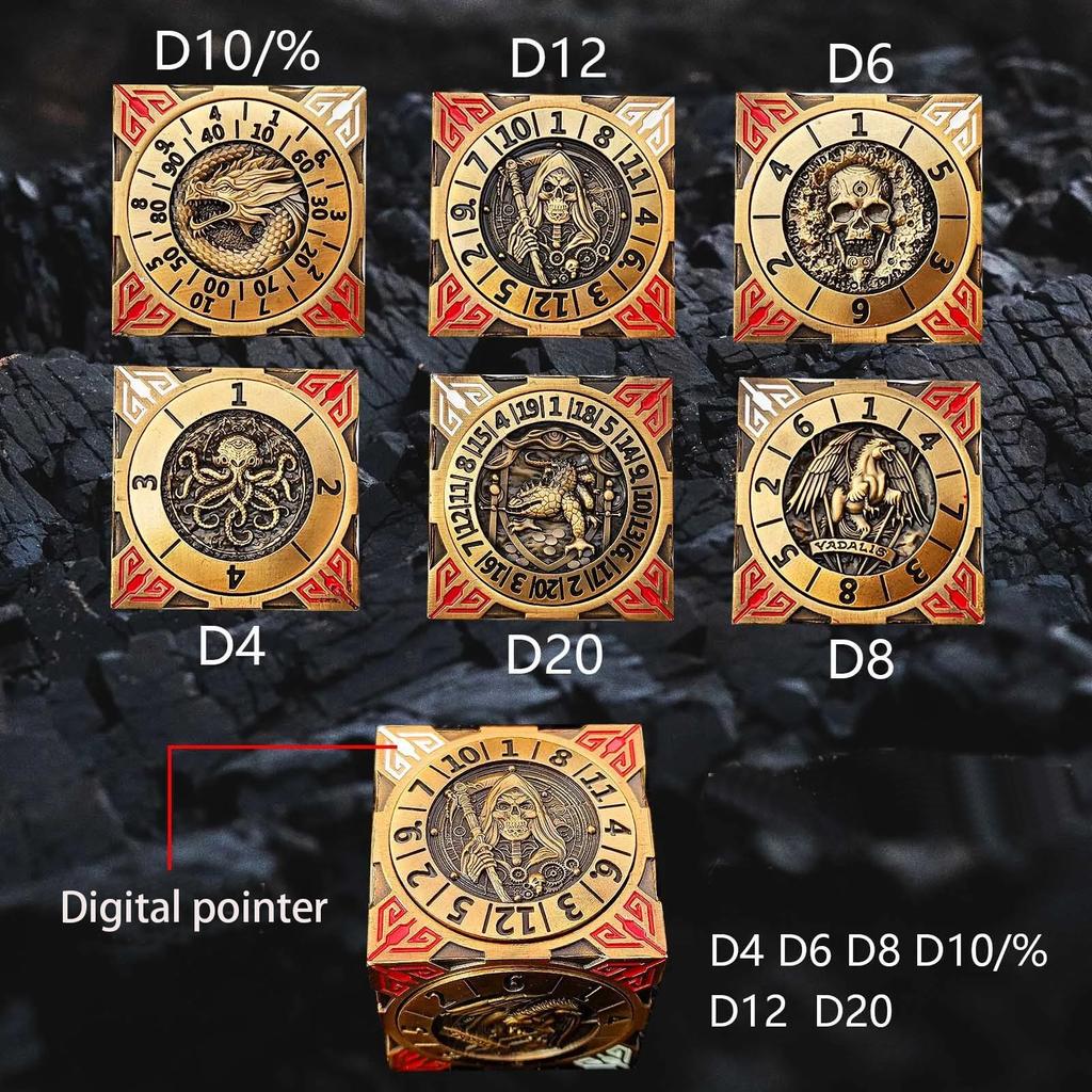7-in-1 Metal Spinner Dice – works as D4, D6, D8, D10, D12, D20 & D100. True random spins, easy-to-read results, and premium 3D dragon engravings. A must-have RPG accessory for D&D and tabletop gamers.
