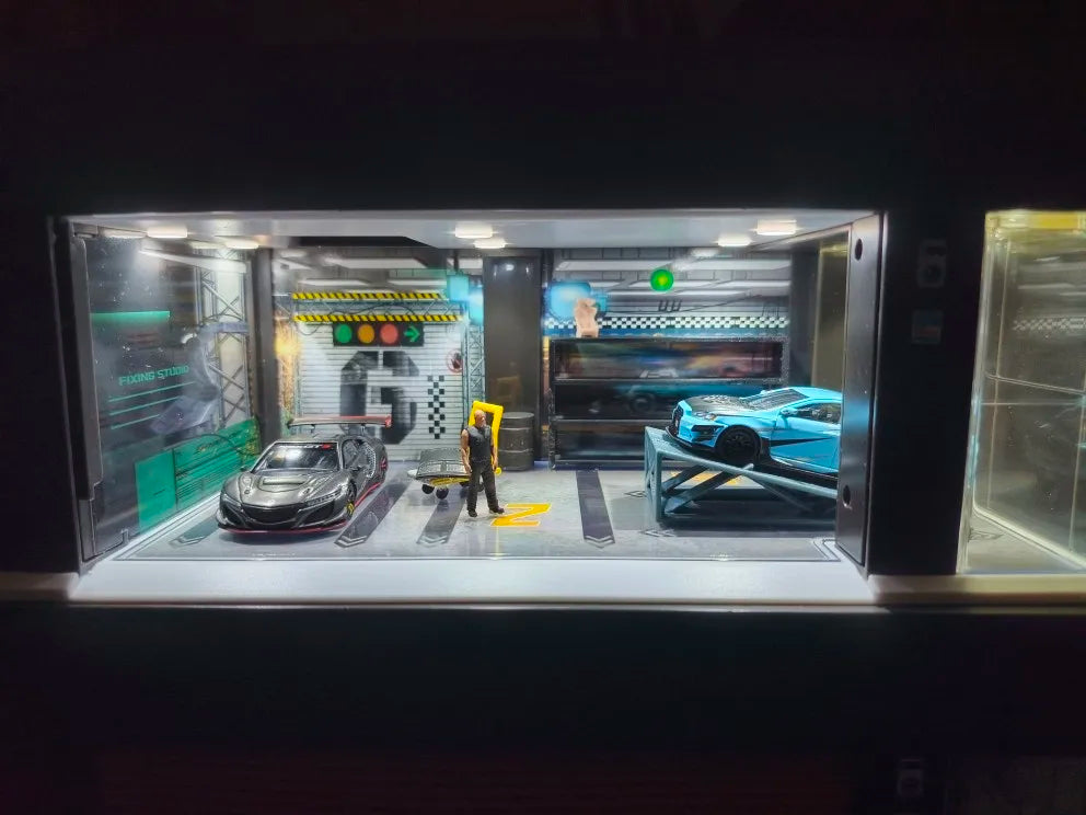 A mini garage and showpiece in one, turning your diecast car setup into an immersive, interactive experience!