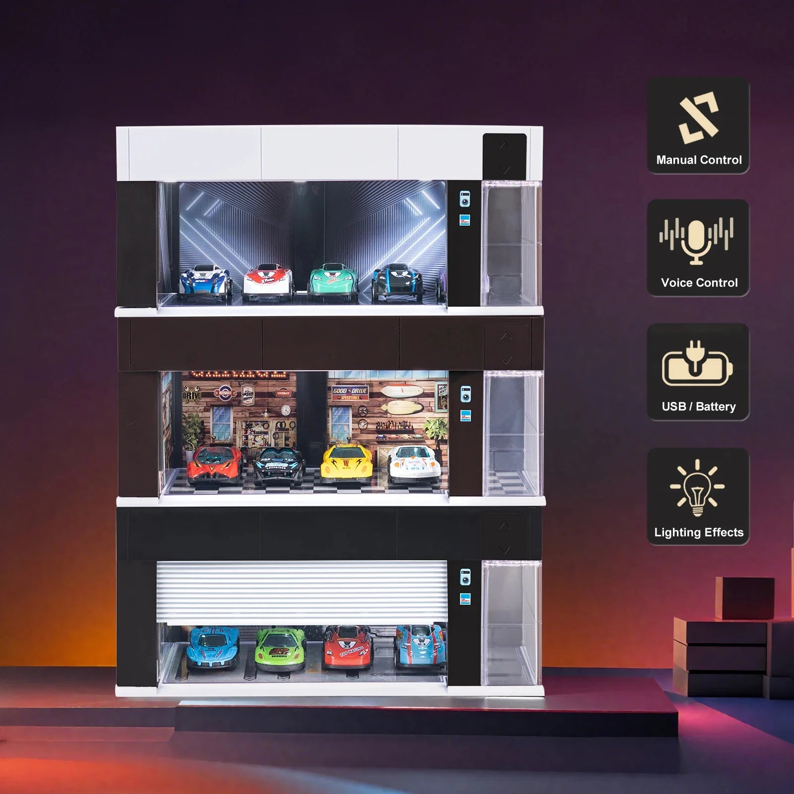 Transform your 1:64 scale cars into a living scene with interactive lights, realistic sounds, and smart doors that respond to your voice!